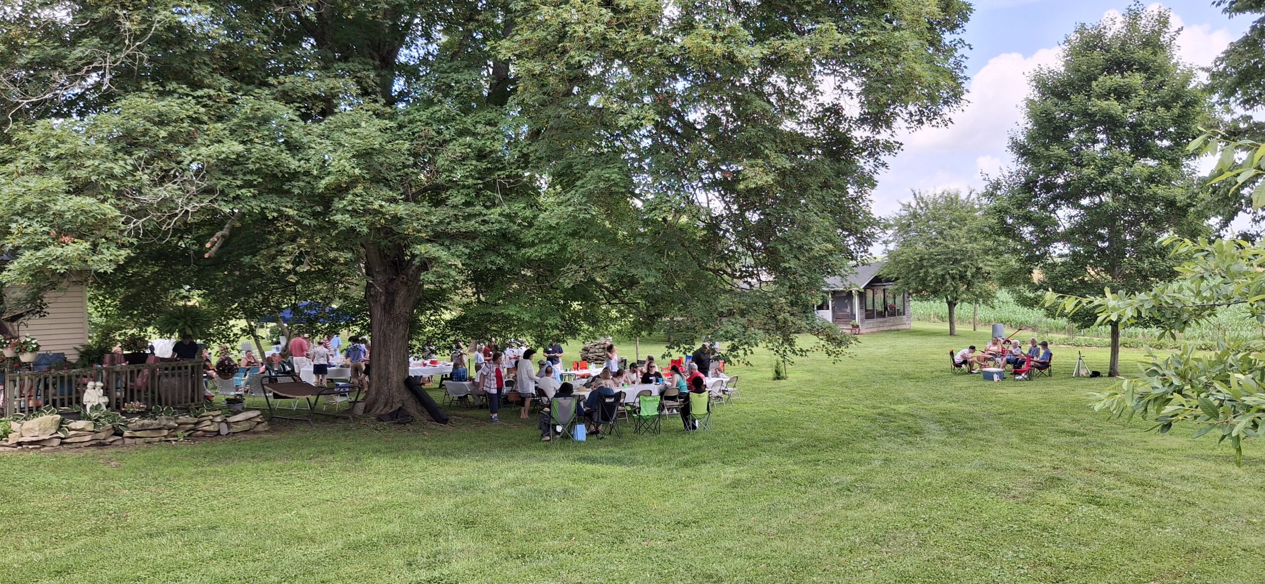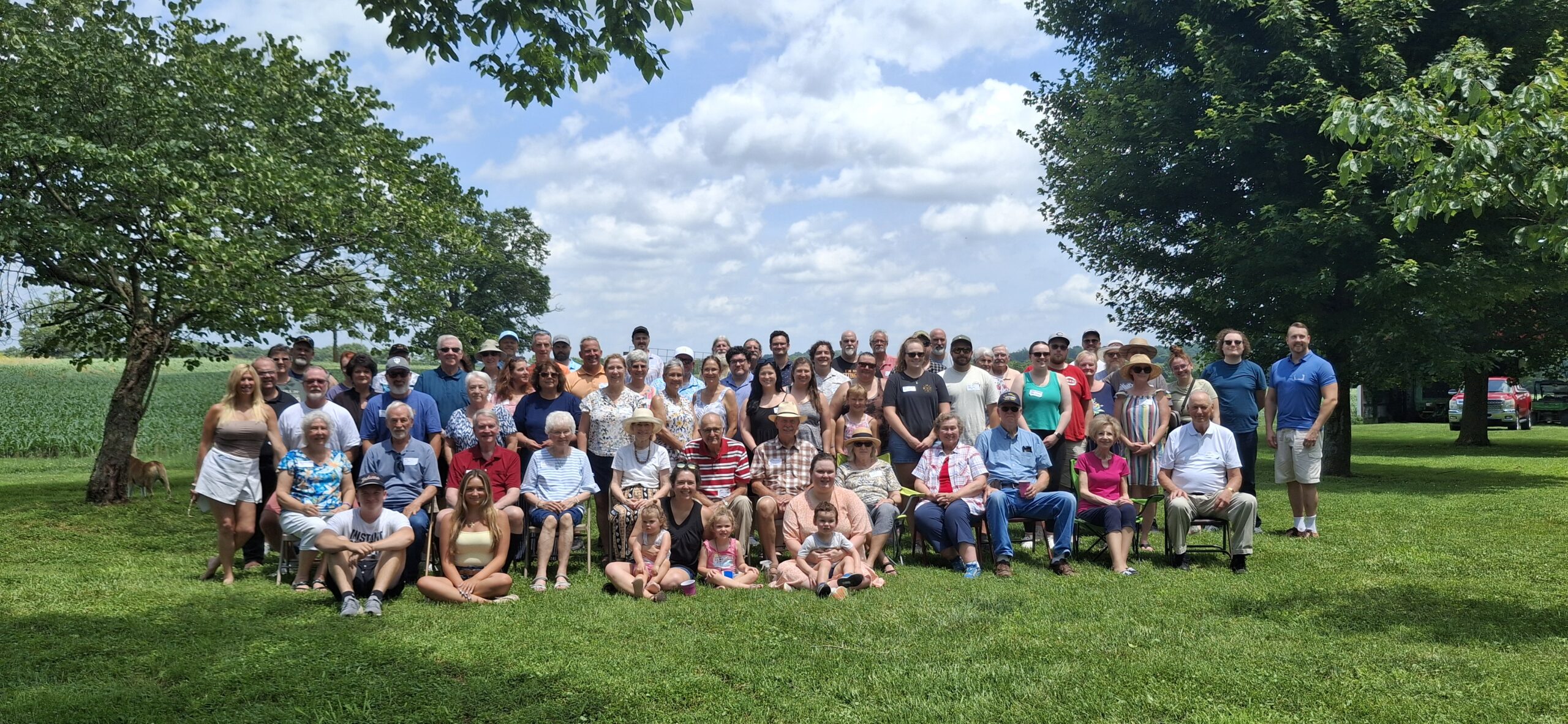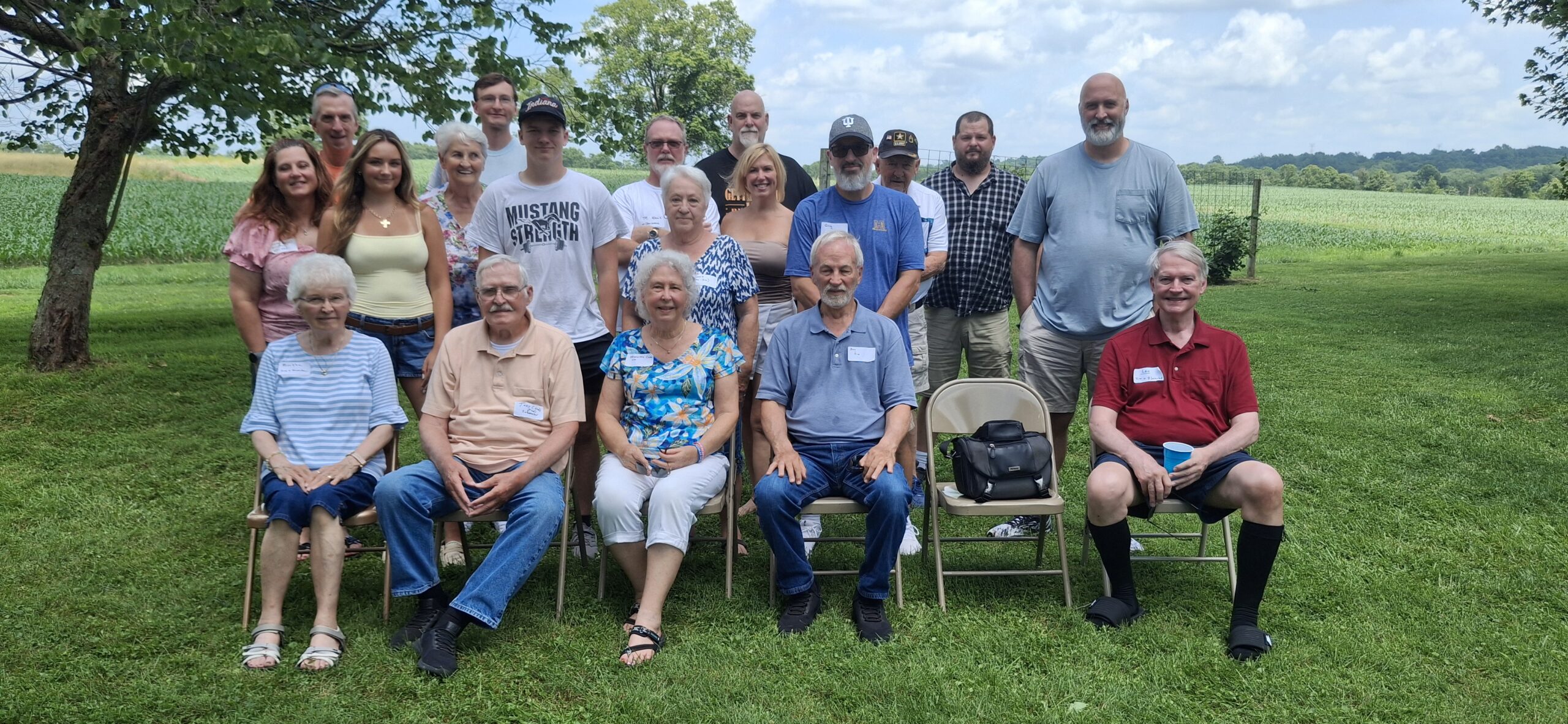Included herein are the photos from the day. The official reunion portrait includes the attendees. Other portraits from the day show the direct bloodline descendants of the current oldest living generation of Scherschel cousins (the 4th generation since immigration) present at the gathering and the successive generations. As well, there are images from the day capturing sites from the homestead farm of Rudolph Joseph and Ida Belle (Mize) Scherschel, who were Mike and Susan’s grandparents. To weave together the strands of history, we’ve also included black and white photos of the first reunion held at the same location.